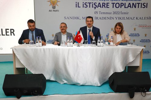 Nilda Altın Okay- AK Parti İzmir tarafından düzenlenen Seçim İşleri Başkanlığı İl İstişare Toplantısı, AK Parti Genel Başkan Yardımcısı ve Seçim İşleri Başkanı Ali İhsan Yavuz'un katılımıyla gerçekleşti. AK Parti İzmir İl Başkanı Kerem Ali Sürekli'nin ev sahipliğinde gerçekleşen toplantıya Bayındır Belediye Başkanı Uğur Demirezen, Kiraz Belediye Başkanı Saliha Özçınar Kutlu, Menemen Belediye Başkan Vekili Aydın Pehlivan, Bergama Belediye Başkanı Hakan Koştu, AK Parti İzmir Milletvekilleri Mahmut Atilla Kaya ile Yaşar Kırkpınar, İzmir Büyükşehir Belediyesi AK Parti Grup Başkanvekili Özgür Hızal, AK Parti Menemen İlçe Başkanı Ahmet Can Çelik ve partililer katıldı.