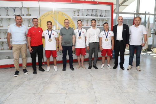 Cezayir’in Oran kentinde düzenlenen 19. Akdeniz Oyunları’na Türk sporcular damga vurdu. Milli sporcular Ferhat Arıcan, İbrahim Çolak, Ahmet Önder, Adem Asil ve Sercan Demir’den oluşan Erkek Milli Artistik Jimnastik Takımı 251,25 puanla zirvenin sahibi olarak altın madalya kazandı. AK Parti İzmir İl Başkanı Kerem Ali Sürekli, bireyselde ve takım halinde 5’i altın olmak üzere toplamda 11 madalya kazanan Şavkar Jimnastik Spor Kulübü sporcuları İbrahim Çolak, Adem Asil ve Ahmet Önder ile antrenörleri Yılmaz Göktekin ile bir araya geldi.