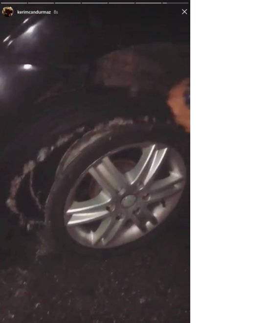 Kazanın şokunu atlatan Durmaz lastiğin görüntüsünü çekip Instagram hesabından takipçileriyle paylaştı. Didim’den İstanbul’a dönen Kerimcan Durmaz, yaptığı paylaşıma “Nazarın bu kadarı” notunu düştü. Şarkıcılık yapan Durmaz’ın aracının lastiğinin paramparça olduğu görüldü.