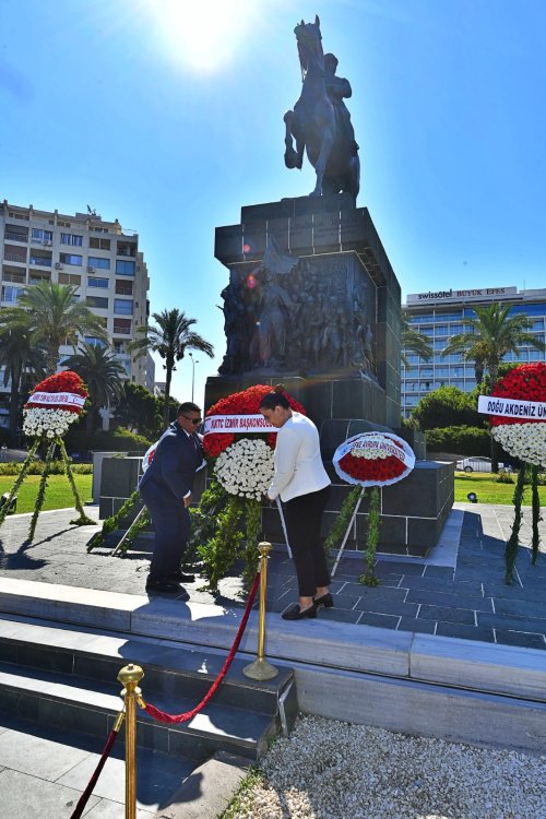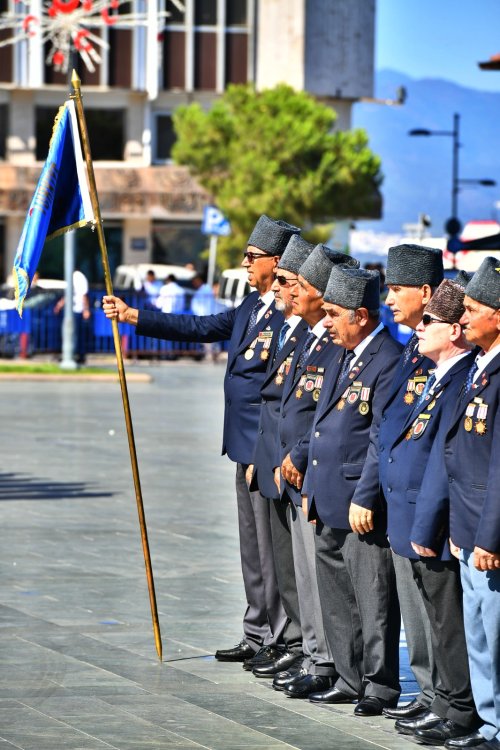 İzmir Cumhuriyet Meydanı’nda yapılan törene İzmir Büyükşehir Belediyesi Başkan Vekili Mustafa Özuslu, İzmir Vali Yardımcısı Barış Demirtaş, KKTC'nin İzmir Başkonsolosluğu Muavin Konsolosu Almıla Tunç, Dışişleri Bakanlığı İzmir Temsilcisi Vekili Adnan Zafer Bekçekaral, Ege Ordusu Kurmay Başkanı Tuğgeneral Selçuk Yavuz, Hava Eğitim Komutanlığı Kurmay Başkanı Tuğgeneral Mustafa Tarkan Gümüş, Güney Deniz Saha Komutanlığı Kurmay Başkanı Tuğamiral Fatih Sezal, İstihkam Okulu ve Merkez Komutanı Tuğgeneral Mehmet Rıfat Alkan, gaziler, şehit yakınları, rektörler, siyasi parti temsilcileri ve vatandaşlar katıldı.