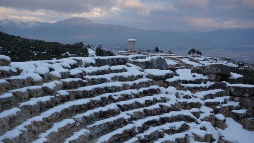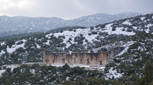 Tarihte gladyatörler şehri olarak bilinen ve Anadolu'nun saklı cennetlerinden biri olan Kibyra Antik Kenti, tarih ve arkeoloji meraklılarını kendine hayran bırakıyor. Burdur'un Gölhisar ilçesinde yer alan bu antik kent, Roma Dönemi'ne ait yapıları ve ihtişamıyla etkileyici. Helenistik dönemden Osmanlı'ya kadar uzanan çok katmanlı yapısıyla dikkat çeken kentte kazı ve restorasyon çalışmaları sürüyor. Geçtiğimiz günlerde yoğun kar yağışı sonrası beyaza bürünen Kibyra, fotoğraf ve video çekmek isteyen ziyaretçilerin ilgisini çekti.