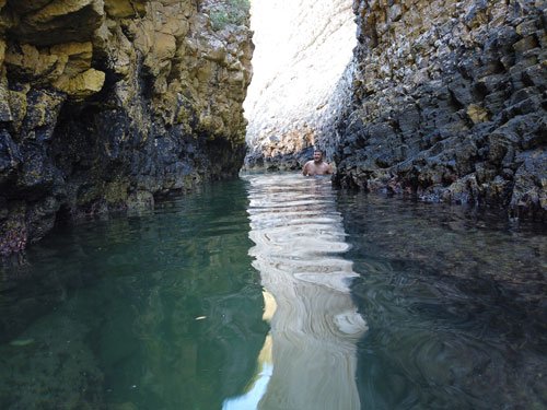 Koyun en güzel kısmını en sona sakladım. Sizi ilk karşılayan alana doğru devam ettiğiniz zaman adacıkların en sonuna adar gidebiliyorsunuz. Patika yol biraz tehlikeli bilginiz olsun. Buradan akşamüzeri çok güzel manzaralar yakalayabilirsiniz. Aşağıya kadar inerseniz eğer bu bölgede yüzülebilecek en güzel boğazlardan birini göreceksiniz. Su hem dalgasız hemde akıntı sizi bu kısımda zorlamıyor. Üstelik eğlenceli sayılabilecek bir çok tünel ve mağara gibi alanlar ilginizi çekebilir.