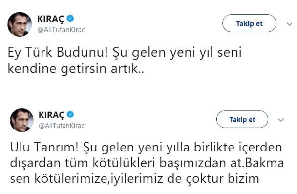 Yeni yıl dileğinde iyi insanlara seslenen Kıraç, öz Türkçe olarak yaptığı paylaşımda şu ifadelere yer verdi: “Ey Türk Budunu! Şu gelen yeni yıl seni kendine getirsin artık. Ulu Tanrım! Şu gelen yeni yılla birlikte içerden dışardan tüm kötülükleri başımızdan at. Bakma sen kötülerimize, iyilerimiz de çoktur bizim” mesajlarını paylaştı.