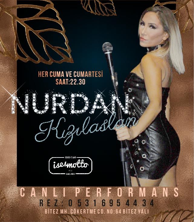 Türkiye’nin birçok yerinde sahne alan; güçlü sesi, güzelliği ve sevilen şarkılara getirdiği yorumuyla dinleyenleri kendisine hayran bırakan Nurdan Kızılaslan 3 kasım cuma gecesi itibariyle her hafta cuma ve cumartesi akşamı Bodrum’un gözde mekanı İses Motto’da sahne alıyor.