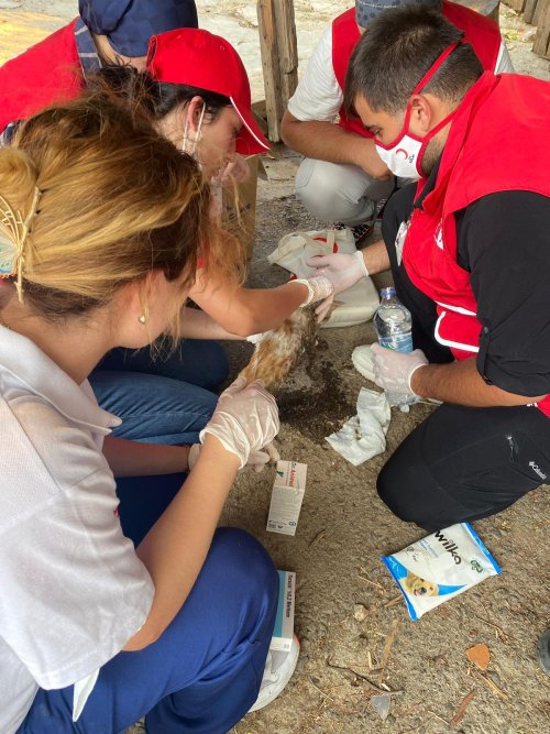 "Karşıyaka ve Bayraklı ilçelerimizi etkileyen Yamanlar dağı merkezli yangınlarda bugün sabah saatlerinden itibaren Konak Kızılay Şubesi olarak ayran su kumanya ve çeşitli gıda destekleri sağlıyoruz. Alevlerle mücadele ederken yaralanan bir çok orman işçisi ve itfaiye ekiplerine yanık kremleri başta olmak üzere tıbbi destek sağlıyoruz. Şube personellerimiz gerekse gönüllülerimiz, zor koşullara ve risklere aldırış etmeden aralıksız dağıtımlara devam ediyorlar. Duamız ve temennimiz inşallah bu yangınların en kısa süre içerisinde söndürülmesi için. Selam ve Dua ile."