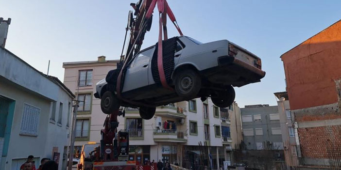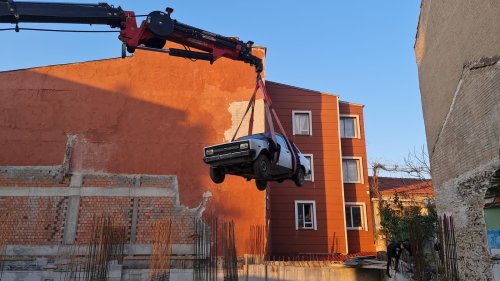 Klasik otomobil, bulunduğu yerden vinçle çıkarıldı