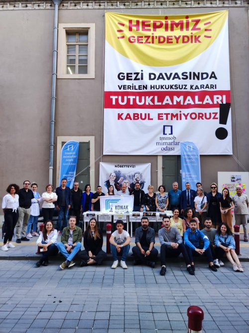 25 Nisan'da Osman Kavala’yı ağırlaştırılmış müebbet hapis; Mücella Yapıcı, Çiğdem Mater, Hakan Altınay, Mine Özerden, Can Atalay, Tayfun Kahraman ve Yiğit Ali Ekmekçi’yi de 18'er yıl hapis cezasına mahkum edilmeleri sonrasında başlayan Gezi Nöbetlerine desteği önüne ilk iş olarak koyan Konak Kent Konseyi Yürütmesi, ilk Yürütme Kurulu Toplantısını Mimarlar Odasında gerçekleştirdi ve nöbete katıldı.