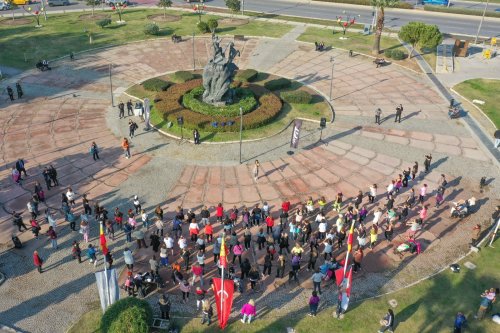 Sporun herkes için ulaşılabilir olması ve sağlıklı yaşamı teşvik etmek amacıyla faaliyetlerini sürdüren Konak Belediyesi, kadınları açık havada zumba dans etkinliğiyle buluşturdu. Güzelyalı Denizatı Parkı’nda düzenlenen aktivitede bir araya gelen kadınlar, eğitmenler eşliğinde zumba yaparak stres attı. Kursiyerlerin ve semt sakini kadınların yoğun ilgi gösterdiği etkinliğe Konak Belediye Başkanı Nilüfer Çınarlı Mutlu da katıldı. Coşkulu şarkılarla zumba yapan kadınlara eşlik eden Başkan Mutlu, dans ve sporu birleştirerek keyifli anlara sahne olan etkinliğin ilçenin farklı noktalarında da yapılacağını müjdeledi. Yaklaşık bir saat süren etkinlik İzmir Marşı ve ardından Cumhuriyet’in 100. yılı için bestelenen Parla Marşı’nın hep bir ağızdan söylenmesiyle son buldu.
