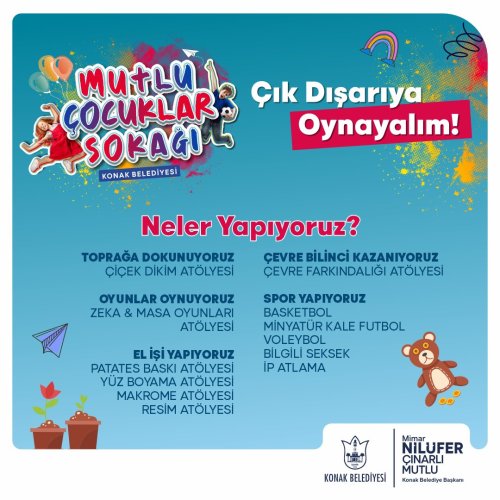 MEDYA EGE – Konak Belediyesi, çocukların sokaklarda özgürce oyunlar oynayabilmelerine olanak tanıyan ve geleneksel sokak oyunlarını yeniden canlandıran ‘Mutlu Çocuklar Sokağı’ etkinliklerini devam ettiriyor. Mutlu Çocuklar Sokağı’nın bu haftaki durağı ise Huzur Mahallesi olacak.