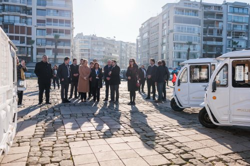 ‘Kapsayıcı Sıfır Atık Yönetimi ile Sosyal Uyumun Güçlendirilmesi Projesi’ kapsamında hibe alan Konak Belediyesi, 1 adet Mobil Atık Toplama Kamyonu ve 10 adet elektrikli triportörü araç filosuna kattı.