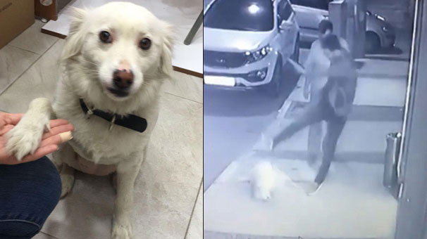 Yerde yatan köpeğe durduk yere tekme attı... İşte o görüntüler