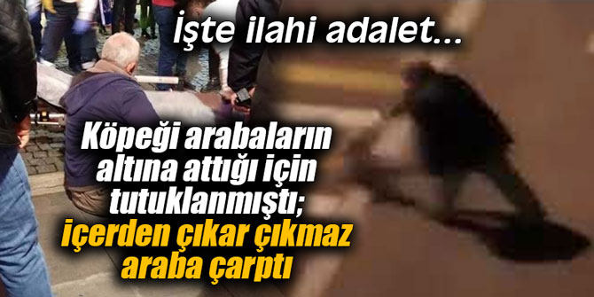 Köpeği arabaların altına attığı için tutuklanmıştı; içerden çıkar çıkmaz araba çarptı