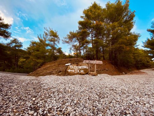 Köprülü Kanyon’dan çıktığınız zaman aynı yoldan yukarıya doğru devam edin. Yol birkaç yerde tabela olmadan ayrılıyor. Siz sürekli sağdan ve yukarıya doğru ilerleyin. Büyük bir taşın üzerinde Tazı Kanyonu işareti görünene kadar devam edin yaklaşık yarım saat sürecek bir yolculuk yapın. Tazı kanyonuna geldiğinizde yol bitiyor.Küçük bir çay ocağı ile gözlemelerin yapıldığı bir yörük çadırı sizi bekliyor olacak. Burada biraz dinlenin çünkü yaklaşık 20 dakika tempolu bir yürüyüş yapmanız gerekiyor.
