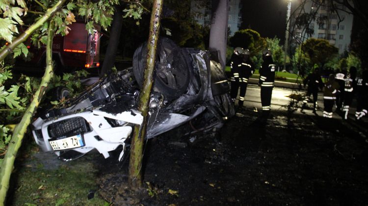 Elektrik direğine çarparak alev alan araç içerisinde bulunan 5 kişiden 3’ü yanarak can verirken, 2 kişi ise ağır yaralandı.