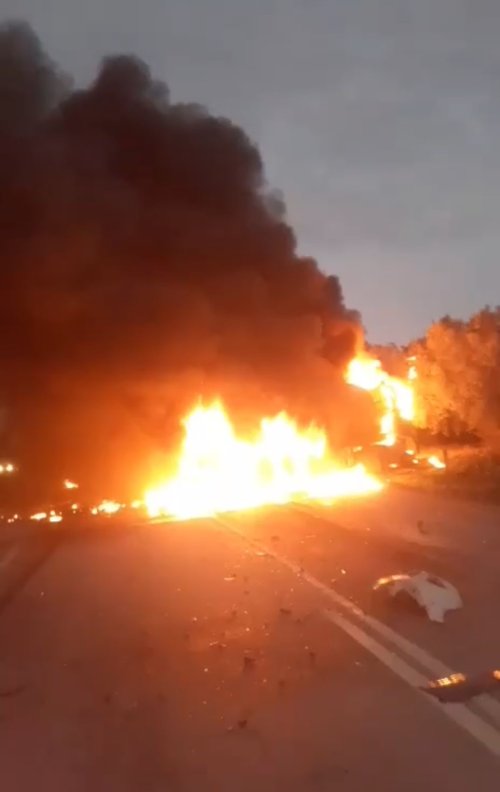 Korkunç kaza: Otomobille çarpışan tanker patladı!