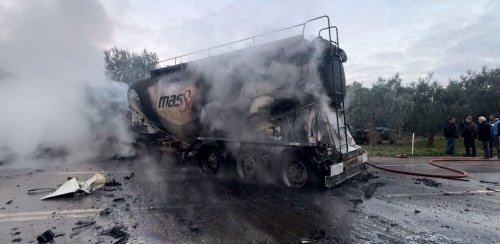 Bursa'da tanker ile karşı şeritten gelen otomobil kafa kafaya çarpıştı. Çarpmanın etkisiyle alev alan tanker patladı. Kazada tanker ile çarpışan otomobil sürücüsü Eşrefzade Mahalle muhtarı hayatını kaybederken yanındaki kişi ise ağır yaralandı.