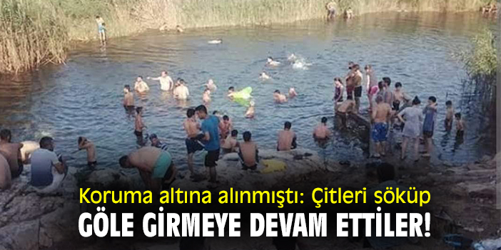 Koruma altına alınmıştı: Çitleri söküp göle girmeye devam ettiler!