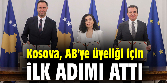 Kosova Cumhurbaşkanı Osmani, Başbakan Albin Kurti ve Meclis Başkanı Gljauk Konjufca ile birlikte ülkenin Avrupa Birliği'ne (AB) üyelik başvurusunu imzaladı.