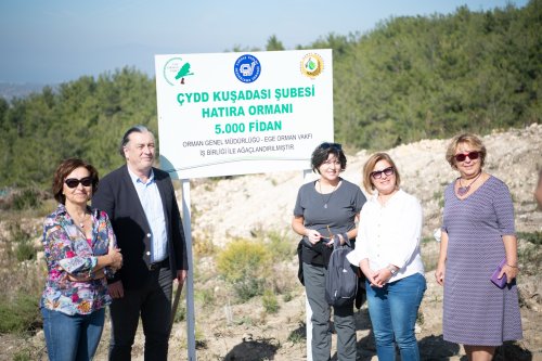 Çağdaş Yaşamı Destekleme Derneği (ÇYDD) Kuşadası Şubesi tarafından pandemi nedeniyle bir süredir ertelenen 5000 fidanlık Hatıra Ormanı projesi yaşama geçirildi. Ege Orman Vakfı ile iş birliği ile Kuşadası-Yaylaköy mevkiinde oluşturulan ormana Kuşadası Belediyesi Başkanı Ömer Günel ve KEGEV Özel Ü. Naci Akdoğan Koleji biner fidanlık korular ile destek oldu. ÇYDD Üyesi Melek Sözer, ÇYDD Kuşadası Şubesi Başkanı Çilen Karakuş ve Kuşadası İstek Okulları’nın beş yüzer fidanla destek verdiği ormanda fidan dikim töreni düzenlendi.