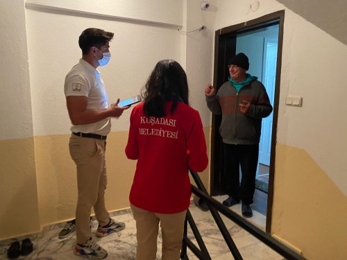 Sorunların yerinde tespitini sağlamak amacıyla Güvercin Masa bünyesinde kurulan gezici ekip, Kuşadalıları evlerinde ziyaret etmeye devam ediyor.