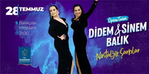 Medya Ege- Kuşadası Belediyesi, 28 Temmuz çarşamba günü gerçekleştirilecek olan konserin ayrıntılarını sosyal medya hesabından paylaştığı son gönderide açıkladı. Balıkçılar Meydanı'nda gerçekleştirilecek olan konserde Opera Twins olarak tanınan Didem ve Sinem Balık sahne alacak. Nostaljik esintilere yer verecek konserin saati ise 21.00 olarak belirlendi.