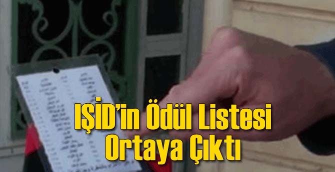 IŞİD'in Ödül Listesi Ortaya Çıktı!