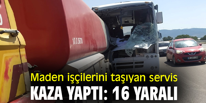 Kınık'ta maden işçilerini taşıyan servisle akaryakıt tankerinin çarpışması sonucu servis minibüsünde bulunan 16 kişi yaralandı.