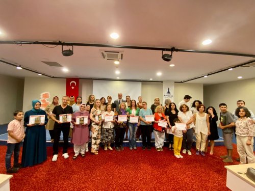 Konak-Kadifekale Atölyesi ve Örnekköy Mahallesi Atölyeleri’nin ürettiği dört filmin gösteriminin yapıldığı törende 39 kadın kursiyer sertifikalarını ve plaketlerini İzmir Büyükşehir Belediyesi Meclis Üyesi Nilay Kökkılınç ve İzmir Büyükşehir Belediyesi Genel Sekreter Yardımcısı Ertuğrul Tugay’dan aldı.