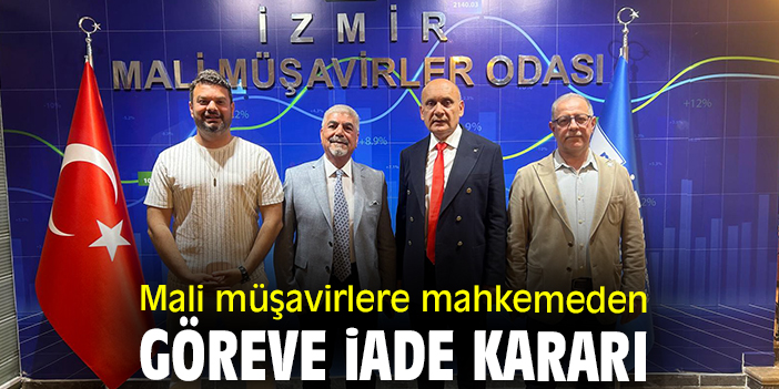 İzmir Serbest Muhasebeci Mali Müşavirler Odası önceki dönem Yönetim Kurulu Başkanı Ertuğrul Davudoğlu, açtıkları dava sonucunda mali müşavirlere mahkemeden göreve iade kararı çıktığını duyurdu.