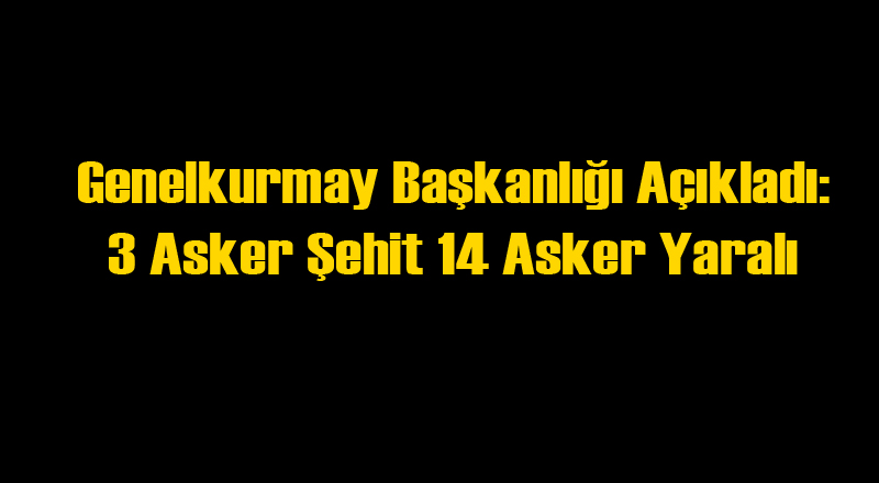 Genelkurmay Başkanlığı 3 Şehit 14 yaralı olduğunu açıkladı