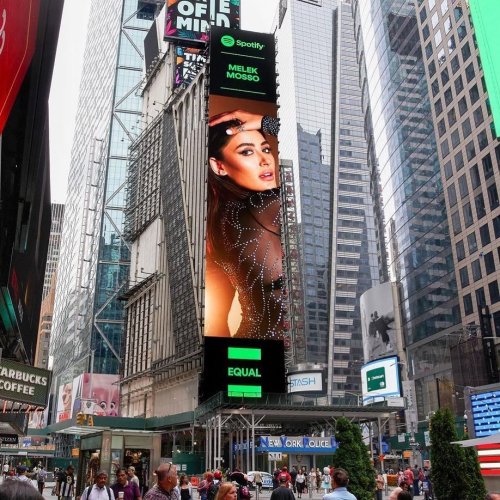 Spotify'ın Equal projesi kapsamında New York Times Meydanı'nın ünlü reklam alanına fotoğrafı yansıtılan şarkıcılar arasına Melek Mosso da katıldı.