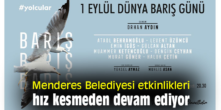 Menderes Belediyesi 30 Ağustos Zafer Bayramı, Zafer Konserleri kutlaması sonrasın da 1 Eylül Dünya Barış günü dolayısıyla güzel bir etkinliğe daha imza atıyor. 1