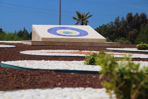 Ekipler tarafından gerçekleştirilen çalışmalarla kavşağın çevresinde peyzaj düzenlemesi yapılırken, orta kısım da Menderes'in simgelerinden biri olan nazar boncuğu ile renklendirildi.