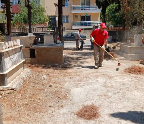 Menderes Belediyesi’nden şehitliklerde temizlik seferberliği