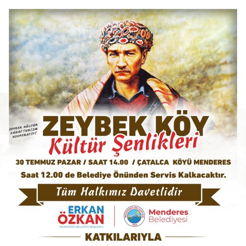 Menderes Belediyesi, tüm vatandaşları Zeybek Köy Kültür Şenlikleri'ne davet etti.