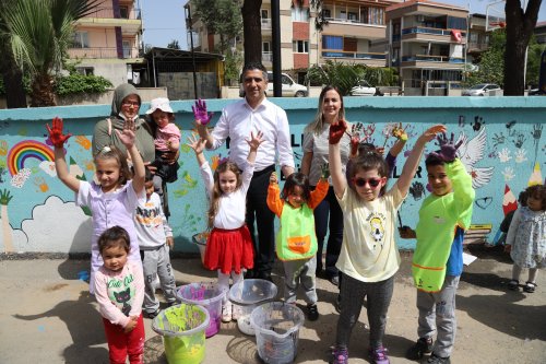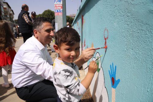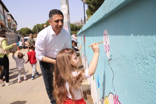 Menderesli çocuklar, Menderes Belediye Başkanı Mustafa Kayalar ile birlikte “Minik Eller, Büyük Hayaller” sloganıyla parkların duvarlarını hayal dünyalarına göre dilediklerince boyadı.
