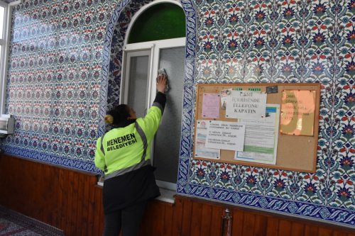 Menemen Belediyesi Temizlik İşleri Müdürlüğü ekipleri, yaklaşan Ramazan ayı öncesinde harekete geçti. Ekipler, ilçe sınırları içerisindeki tüm ibadethanelerde temizlik ve dezenfektan çalışması başlattı. Bu kapsamda halılar yıkandı ve süpürüldü. Şadırvanlar, abdesthaneler ve lavabolarda temizlenerek dezenfekte edildi. Pencereler, kapılar, camlar ve duvarlar da büyük bir titizlikle silindi. Yine camilerin bahçelerinde de çevre temizliği yapıldı.