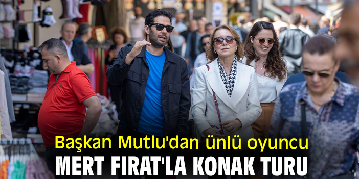 Başkan Mutlu'dan ünlü oyuncu Mert Fırat'la Konak turu
