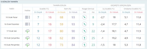 Muğla çevreleri ile Antalya'nın batısında kuvvetli, Antalya'nın batı kıyılarında yer yer çok kuvvetli ve şiddetli olması beklenen yağışların genellikle yağmur ve sağanak, Güney Ege ve Batı Akdeniz kıyılarında yer yer gök gürültülü sağanak, Doğu Anadolu'nun yağış alan kesimleri, Gaziantep ve Diyarbakır çevreleri ile Batı Akdeniz'in Toroslar kesiminde karla karışık yağmur ve kar şeklinde olacağı tahmin ediliyor. İç ve doğu kesimlerde yer yer pus ve sis bekleniyor.