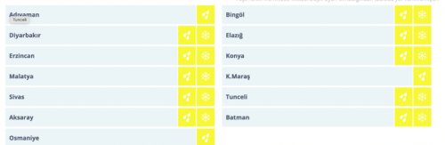 Sarı kod verilen iller: