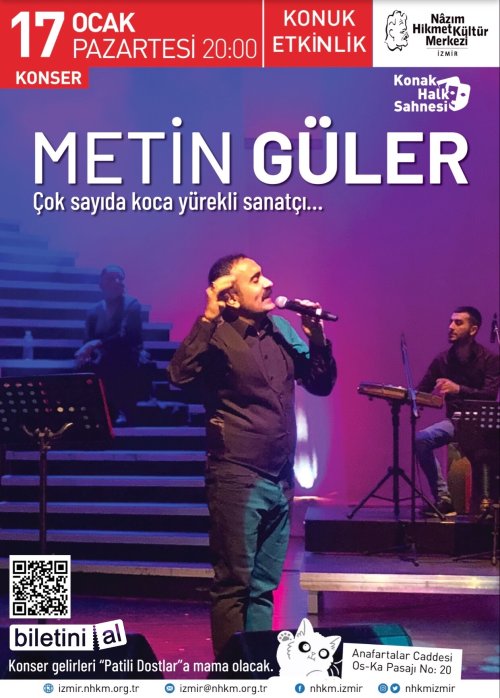 İzmirli tiyatro sanatçısı ve Tiyatro Ofisi Sanat Yönetmeni Metin Güler bu kez sokakta ki Patili dostlar için sahne alacak. Güler 17 Ocak 2022 Pazartesi bir konser performansı yapacak ve konser gelirini sokakta ki patili dostlara mama olarak kullanacak.