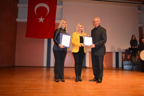 Etkinliğin sonunda EÜ DTMK Müdürü Prof. Dr. Özge Gülbey, Öğr. Gör. Halil İbrahim Yüksel’e ve İcra Heyeti adına Sevan Tabanlı Mural’a teşekkür belgesi takdim etti.