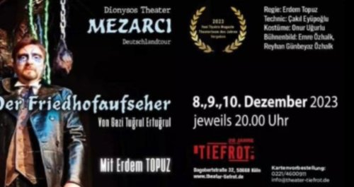 'Mezarcı' tiyatro oyunu, Almanya Turnesi kapsamında 8-9-10 Aralık 2023 Köln Theater Tiefrot'da tiyatroseverler ile buluşacak.
