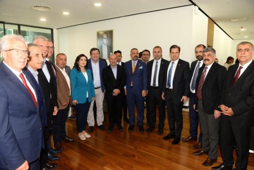 Cumhurbaşkanı Adayı Kemal Kılıçdaroğlu'nu İzmir'de CHP İzmir İl Başkanı Şenol Aslanoğlu, CHP İzmir Vekilleri, İzmir Büyükşehir Belediye Başkanı Tunç Soyer, CHP İzmir Milletvekili Adayı Deniz Yücel, CHPli belediye başkanları ve partililer karşıladı.