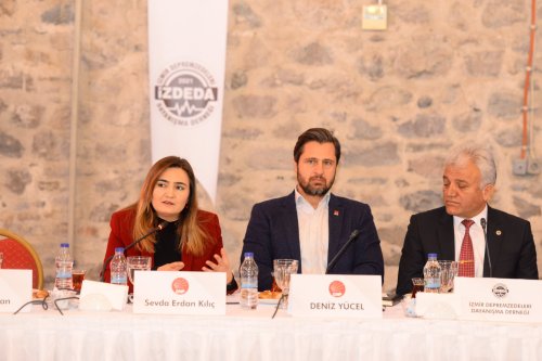 Nilda Altın- İzmir Depremzedeleri Dayanışma Derneği (İZDEDA) Başkanı Haydar Özkan’ın davetiyle gerçekleşen toplantıya, Cumhuriyet Halk Partisi (CHP) İzmir Milletvekilleri Ednan Arslan, Sevda Erdan Kılıç, Tacettin Bayır, Kamil Okyay Sındır, Murat Bakan ve Bedri Serter ile CHP İzmir İl Başkanı Deniz Yücel katıldı. Diğer siyasi partilerden katılım olmaması ise dikkat çekti.
