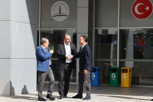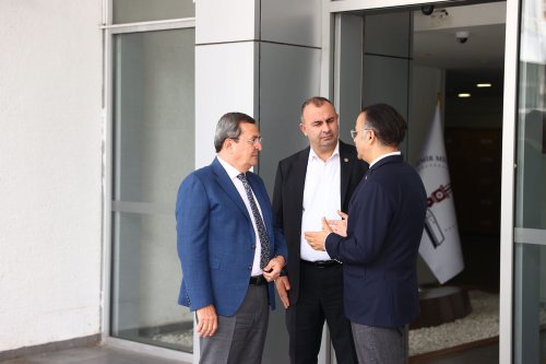 İzmir İl Milli Eğitim Müdürü Dr. Ömer Yahşi, Konak Belediye Başkanı Abdül Batur ile CHP İzmir Milletvekili Ednan Arslan'ı makamında ağırladı.