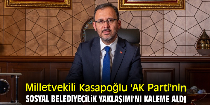 Kasapoğlu makalesinde, sosyal belediyecilik kavramının fonksiyonlarını Toplumun Sosyalleştirilmesi, Toplumun Yönlendirilmesi, Dezavantajlı Gruplara Destek, Toplumun Refahını Artırma olarak 4 ana başlığa ayırırken Cumhurbaşkanı Recep Tayyip Erdoğan’ın, 1994 yılında İstanbul Büyükşehir Belediye Başkanı olduğunda, hayata geçirdiği en önemli hamlelerden birinin sosyal belediyecilik anlayışı olduğunun altını çiziyor. Kasapoğlu; “Ortaya konulan bu vizyon uyarınca Cumhurbaşkanımızın liderliğindeki AK Parti, ‘insan odaklı ve hizmet temelli’ bir yaklaşımı benimsemiş ve ‘hizmet ve proje söylemlerini önceleyen’ politika stratejileri inşa etmiştir. "İnsanı yaşat ki devlet yaşasın." ilkesi bir düstur olarak merkeze alınmış, özgün yerel yönetim modeli olarak adlandırılan "AK Parti Belediyeciliği" bu bağlamda vatandaşlarımıza sunulmuştur.” diye yazdı. Sosyal meseleleri konu alan makalesinde; “Sosyal yardımlar, dezavantajlı kesimin gözetilmesi, burs, eğitim, kültür, sanat, spor, sağlık ve sosyal faaliyet alanlarında etkin üretim gibi çalışmalar, merkezi yönetimle eşgüdümlü olarak yerel yönetimler tarafından da ifa edilmeye başlanmış, sosyal devlet anlayışının gereklilikleri yerel yönetimlerin güçlü desteğiyle başarılı bir şekilde uygulanmıştır. AK Parti bu anlamda siyasi tarihimize adeta bir kilometre taşı belirlemiştir. AK Parti belediyelerinin sağladığı sosyal yardımlar, ücretsiz evde sağlık hizmetleri, öğrenci bursları, barınma hizmetleri, sokak hayvanlarına yönelik çalışmalar, sosyal alanların çoğaltılması, yeşil ve doğa dostu uygulamalar, yaşlılarımıza yönelik sosyal alanlar ve faaliyetler, meslek edindirme kursları, kadınlarımızın üretiminin desteklenmesi çalışmaları, Cumhuriyet tarihinin en yüksek seviyelerinde gerçekleştirilmiştir. AK Parti’ye oy vermeyen kesime de hizmeti götürmek, hizmetlerde seçmen ayrımı yapmamak, belediye hizmetlerinden herkesin, eşit şekilde faydalanmasını temin etmek en temel prensip olmuştur. AK Parti iktidarının sosyal devlet anlayışının dinamosu, sosyal belediyecilik stratejisidir ve merkezi yönetimle ahenk içerisinde bu strateji, 2002’den bu yana başarıyla uygulanmıştır” diyerek partisinin belediyecilik anlayışına vurgu yaptı.