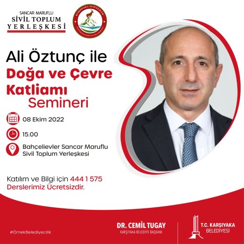 MEDYA EGE- Karşıyaka Belediyesi Doğa ve Çevre Katliamı Seminerinde Doğa Hakları ve Çevreden Sorumlu Genel Başkan Yardımcısı Ali Öztunç'u konuk edecek.
