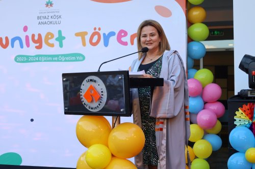 İEÜ Çocuk Üniversitesi Uygulama ve Araştırma Merkezi Müdürü Öğretim Görevlisi Ezgi Oral Bozkurtoğlu ise ailelere seslenerek, “Sadece çocuklarımız için değil hepimiz için büyük bir öğrenme ve keşif yılı oldu. Çocuklarımız, siz ebeveynlerinin desteği ve sevgisiyle büyüdüler, öğrendiler ve geliştiler. Onların büyüme ve gelişim sürecine şahitlik etmek, bizim için çok kıymetli bir deneyim oldu. Sizler, onların önce ilk kelimelerini, ilk adımlarını beklediniz. Onlar ise okulda ilk kez kendi başına bir resmi tamamlamayı, arkadaşıyla bir oyunu ilk kez paylaşmayı deneyimledi. Elbette dönem boyunca zor zamanlar da yaşadık. Bazen yaşadıklarımıza kahkahalarla güldük, bazen ne yapacağımızı bilemedik. Ama ekibimiz ve ailelerimiz, her zaman çocuklarımızla özverili çalışmalar gerçekleştirdi. Bir sınıfımızın daha mezuniyetini kutlayarak çocuklarımızı ilkokula uğurluyoruz. Çocuklarımıza tüm eğitim hayatları boyunca başarılar diliyorum” dedi.