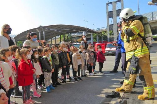 Bayraklı Ege Güneşi Anaokulu öğrencileri, İzmir Büyükşehir Belediyesi İtfaiye Dairesi Başkanlığı'nın Yenişehir merkezine ziyarette bulundular.